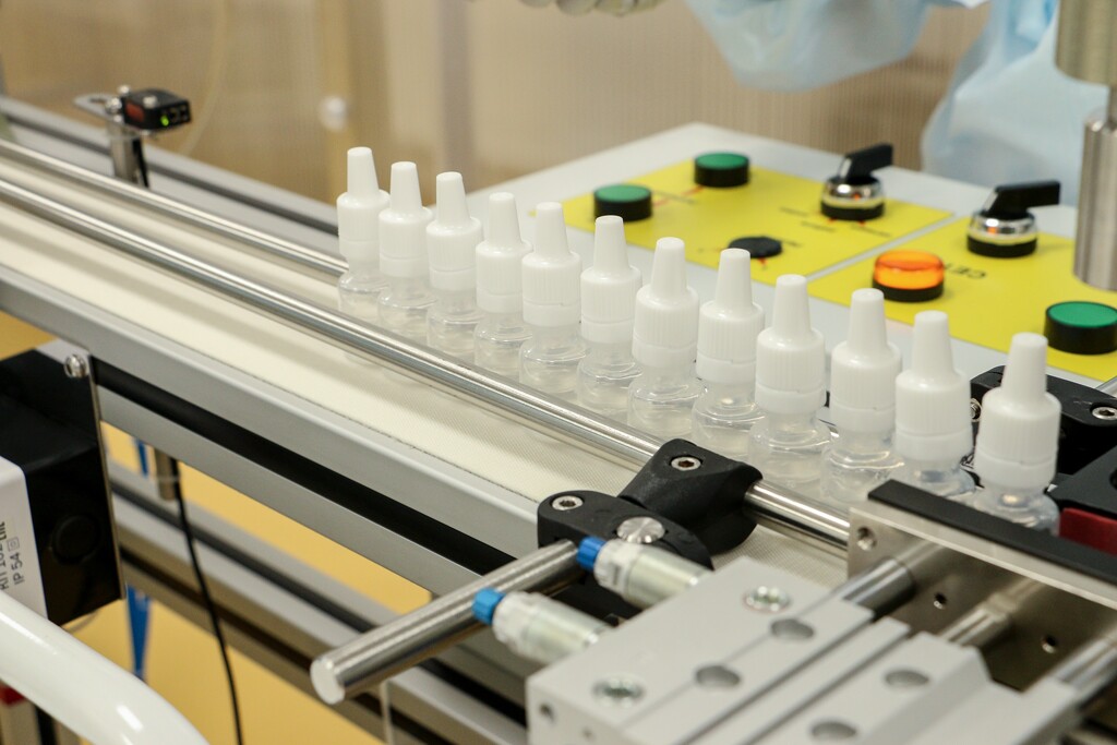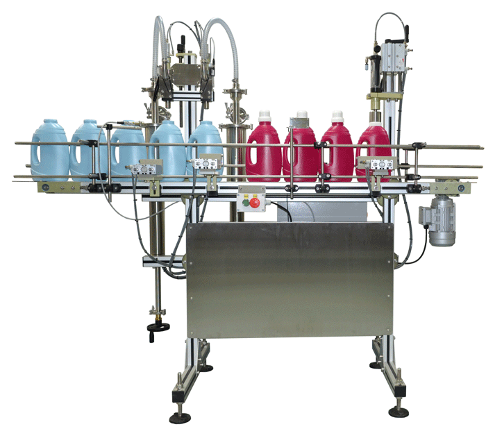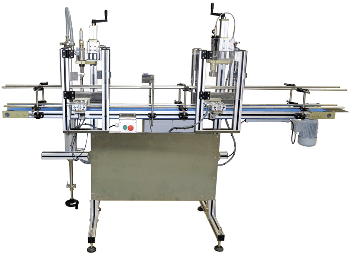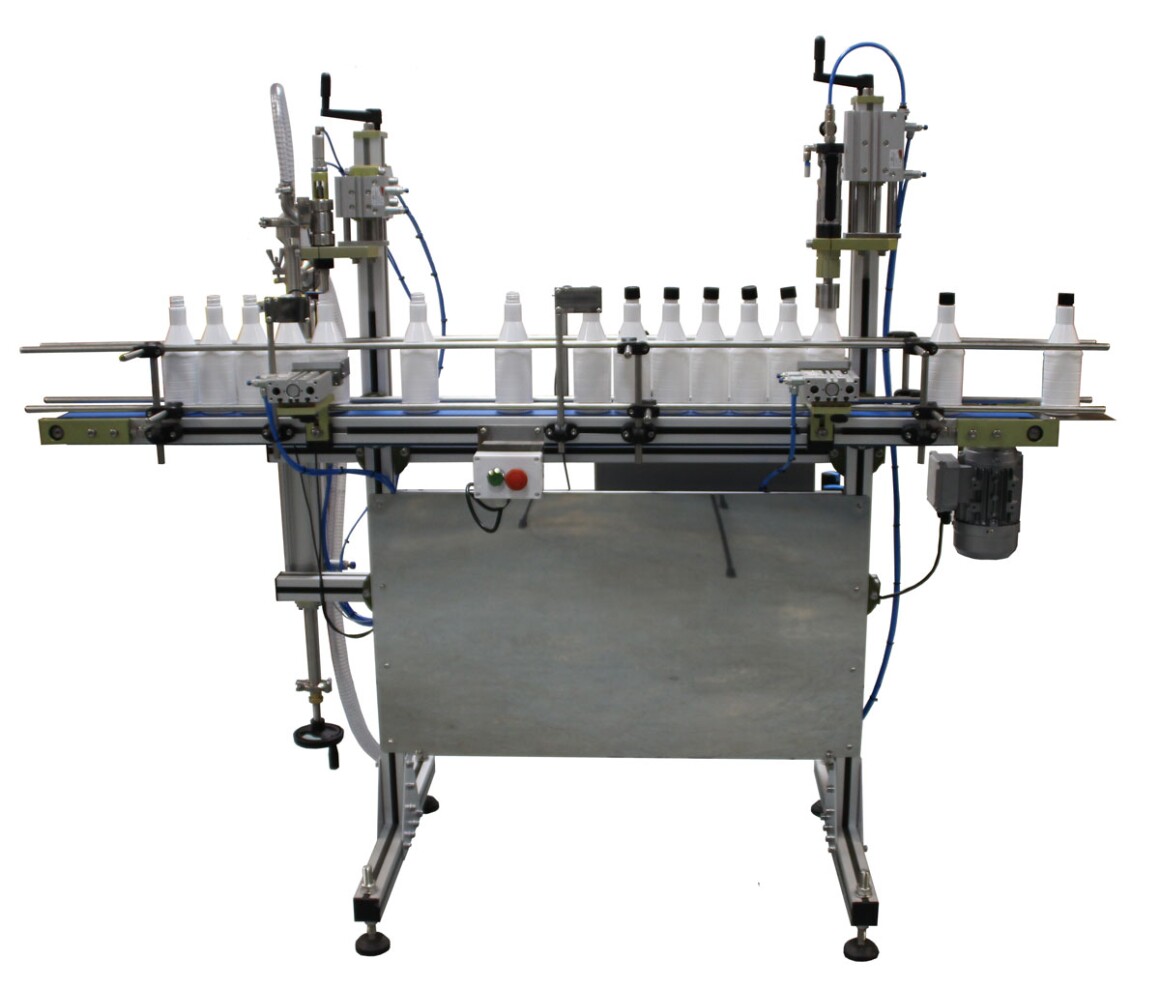 Автоматическая линия розлива и укупорки жидких, густых и пастообразных продуктов во флаконы одним оператором. Для косметической, парфюмерной, пищевой и медицинской промышленности.